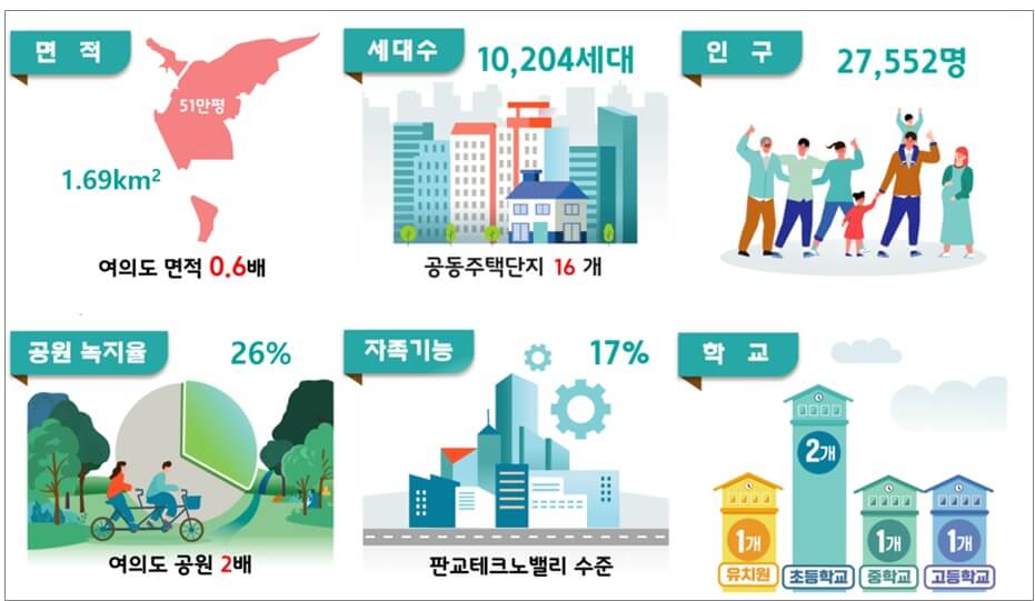 | 공원 녹지율 | 26% (여의도 공원 2배) |