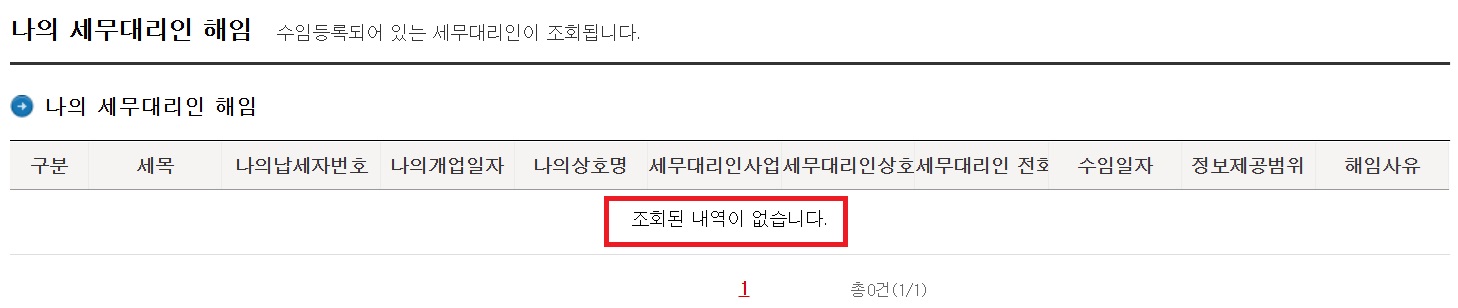 만약 세무대리인이 등록되지 않았다면 아래 그림과 같이 나오게 됩니다.
