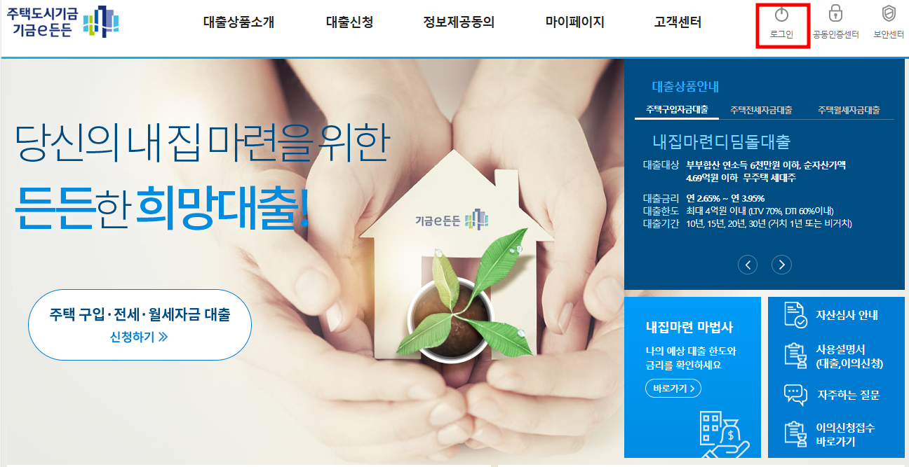 Step5. 주택도시기금 기금 e 든든 페이지로 자동 이동 후, 회원가입 또는 로그인을 합니다.