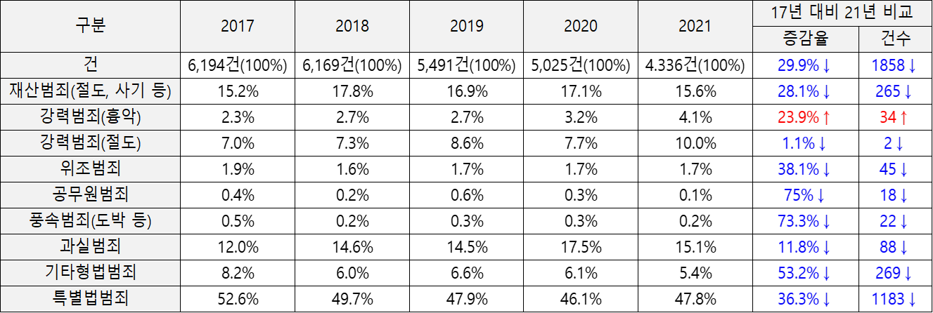 또한 17년과 21년을 비교하면 많은 부분에서 내려간 것을 알 수 있습니다.