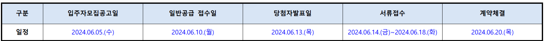 | 청약 접수 | 6월 10일(월), 09시 ~ 17시 30분 |
