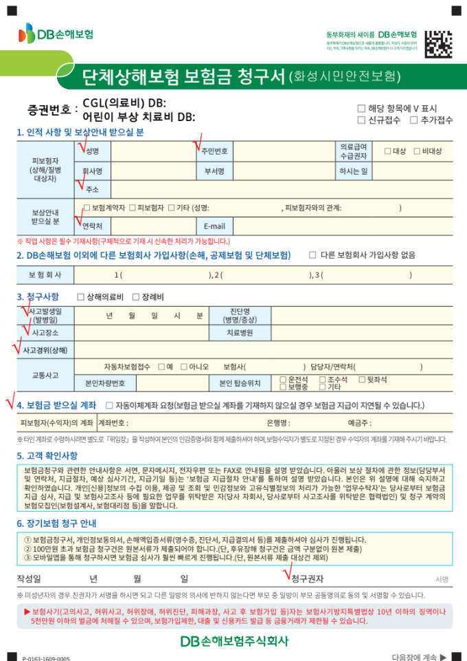 - 보험금 청구서 및 개인정보 동의서 1부
