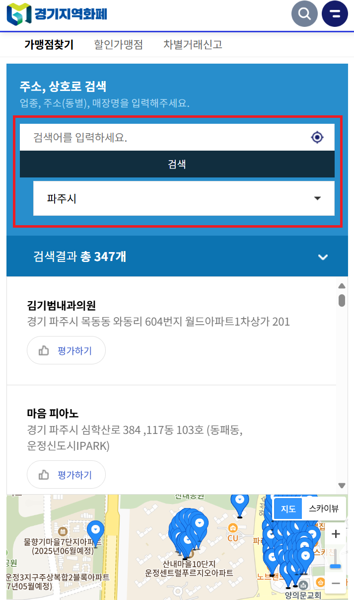 더 확실한 방법은 경기지역화폐 홈페이지에서 사용을 원하는 가게에서 파주페이가 가능한지 확인하실 수 있습니다.
